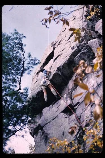 The impetus for this whole post came about in digging through some archival ’60s-era photos for use on our Instagram. We reached out to Rich Goldstone, a climber more famously associated with the Gunks, who had taken the photo in question. He provided many more photos and backstory that seemed too long-form for social media. The photo in question was this: