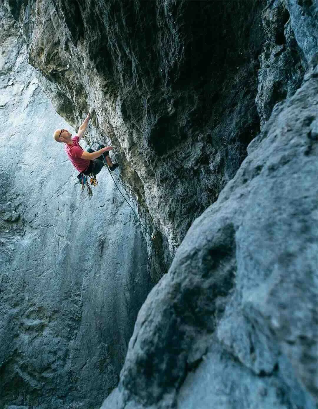 Matthew Crockett on Great White 5.12b, opposite, photo by Evan Wisheropp